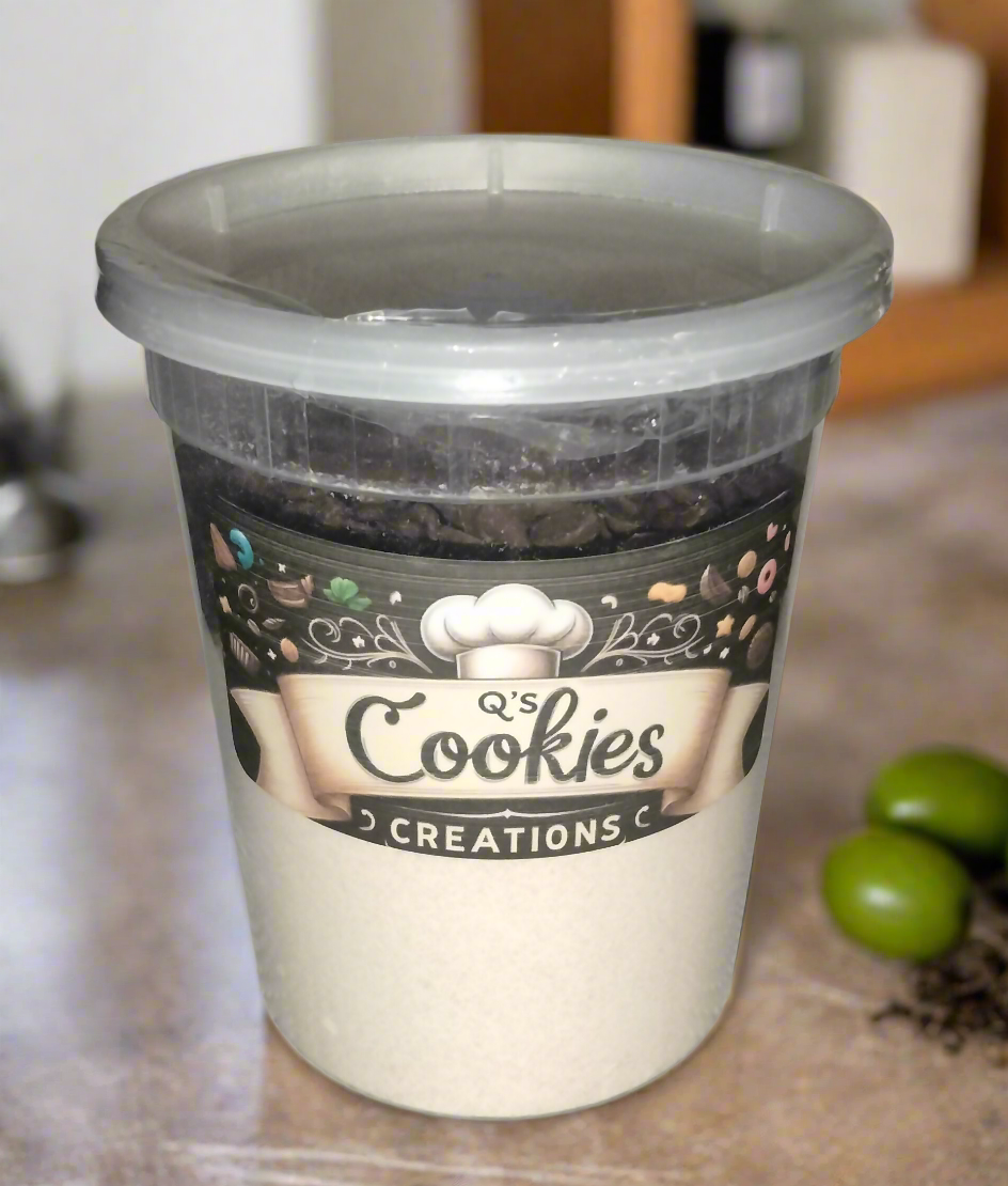 Q's famous Dry Mix Gourmet Cookies! just add an egg and a stick of margarine/ butter or 1/2 cup of oil!